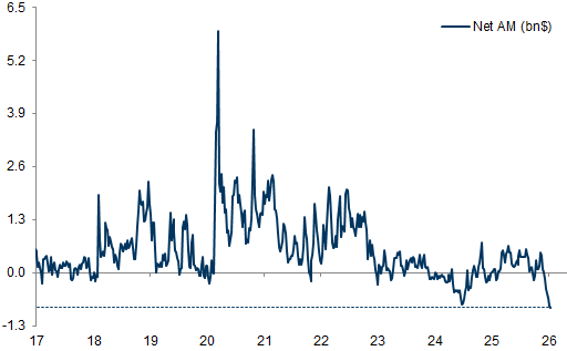 Right now, asset managers are not structurally leaning short. That removes one layer of embedded asymmetry in long-volatility trades.